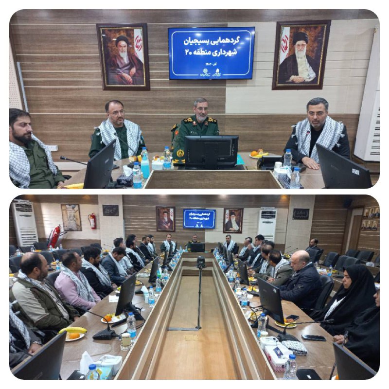 مراسم تکریم و تجلیل از بسیجیان حوزه بسیج شهدای شهرداری منطقه ۲٠ با حضور سردار احمد ذوالقدر فرمانده سپاه سید الشهدا (ع)، رضا شنگی شهردار منطقه۲٠، سرهنگ پاسدار محمد مهدی حسن زاده مسئول سازمان بسیج شهرداری تهران، مهدی مالمیر فرمانده حوزه بسیج شهدای شهرداری منطقه۲٠