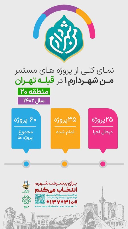 نتیجه اعتماد و ارائه ایده های شما در طرح من شهردارم۱ در سال ۱۴٠۲، منجر به اجرای ۶٠ پروژه در قبله تهران شد