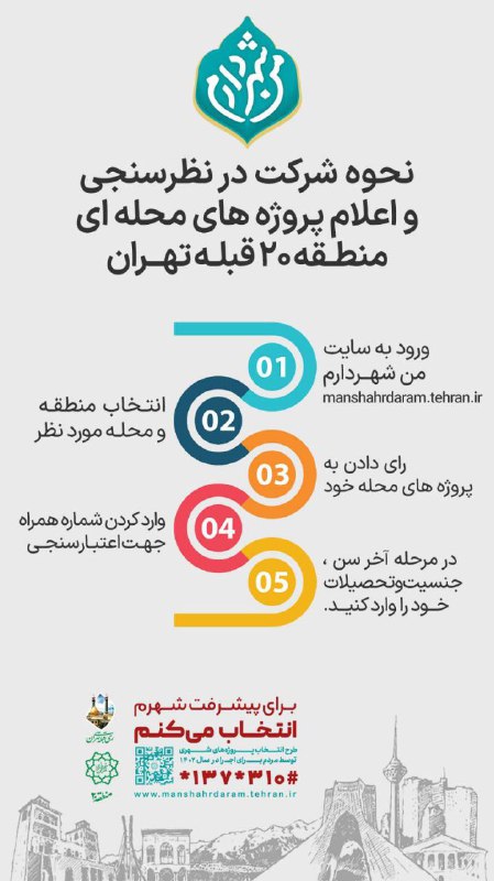 لینک رأی گیری پروژه های من شهردارم۲ : https://manshahrdaram.tehran.ir/Home/ProjectSurvey