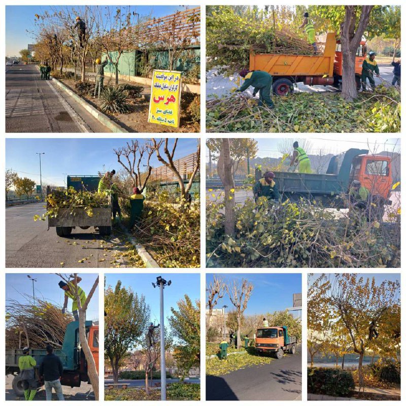 اجرای عملیات هرس شاخه های خشک درختان با هدف جوان سازی و کاهش آفات و رفع خطر احتمالی با هماهنگی و برنامه ریزی های انجام یافته به صورت مستمر انجام می شود.