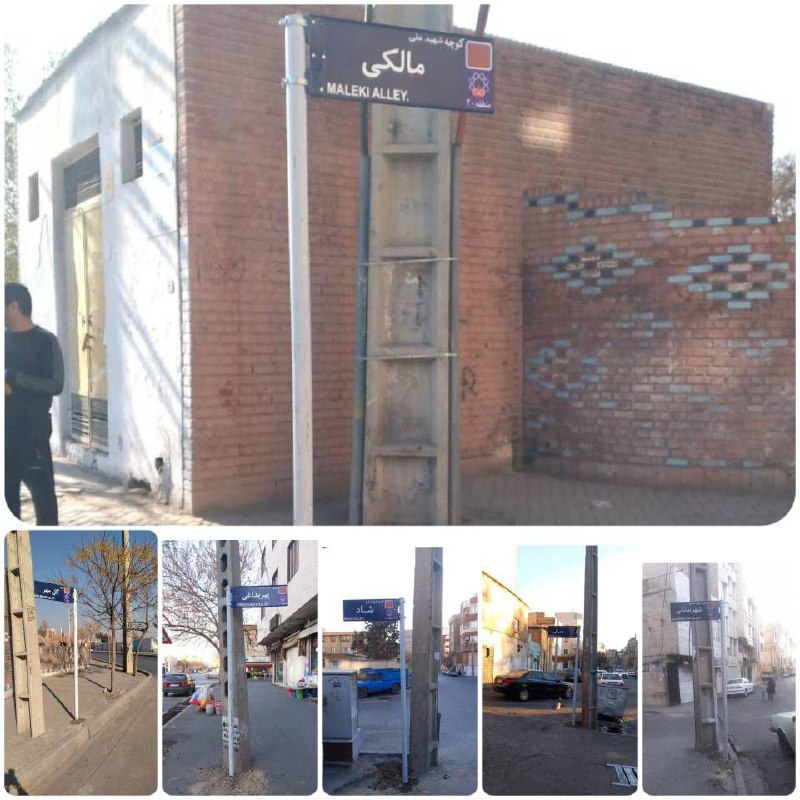 در اجرای طرح زیباسازی معابر عمومی و همچنین اهمیت تابلوهای معابر برای مسیر یابی شهروندان ، تابلو پرچمی خیابان های شهید مسجودی ، خیابان گل مهر ،خیابان شهید مالکی ، کوچه شهید شهرستانی، کوچه شهید حیدری ، کوچه شاد و کوچه شهید زمانی تعویض و نصب شد.
