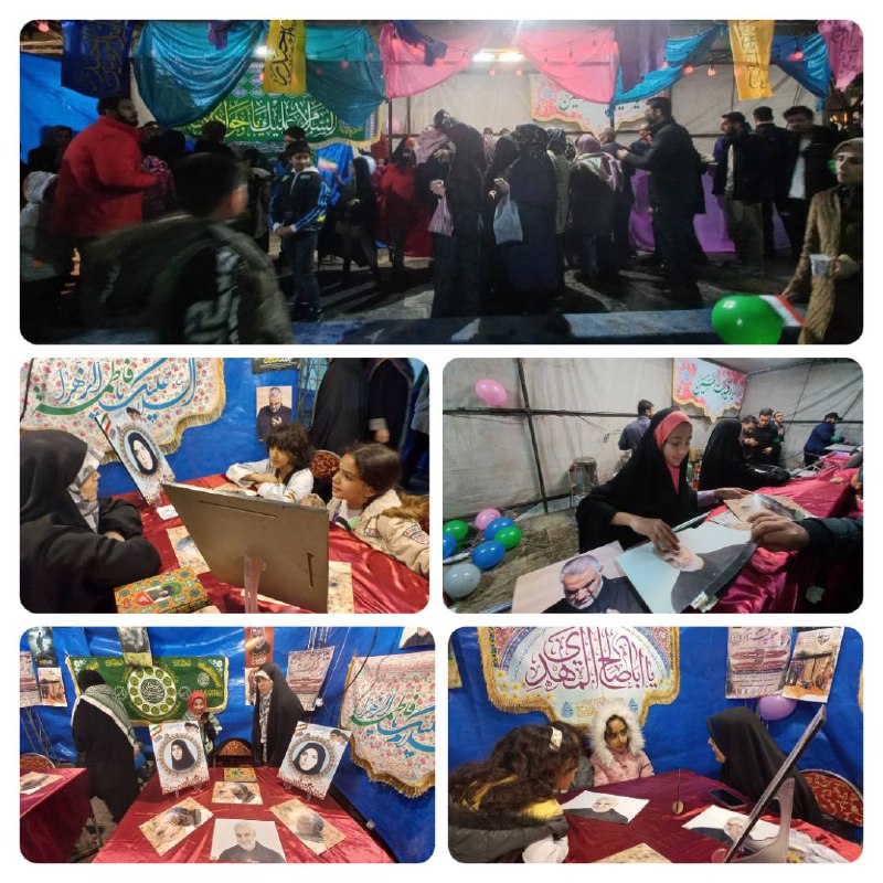 برپایی غرفه های فرهنگی در حاشیه مراسم جشن خیابانی به مناسبت ولادت حضرت فاطمه (س) و روز زن با حضور جمعی از خانواده های معظم شهدا و مدیران شهری در میدان دوم دولت آباد، هیئت عشاق العباس(ع)