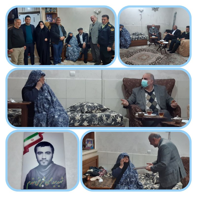 به مناسبت فرارسیدن یوم اللّه دهه مبارک فجر صبح امروز اکبری بخشدار خاوران به همراه دهیار و رییس شورای اسلامی روستای محمودآباد و نماینده کلانتری خاورشهر با حضور در بیت معظم شهید سید محسن شریفی مقدم با مادر بزرگوار شهید دیدار نمودند.