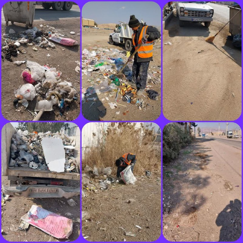۲-جمع آوری زباله های اطراف سطل های زباله جاده و پاکسازی ورودی روستا