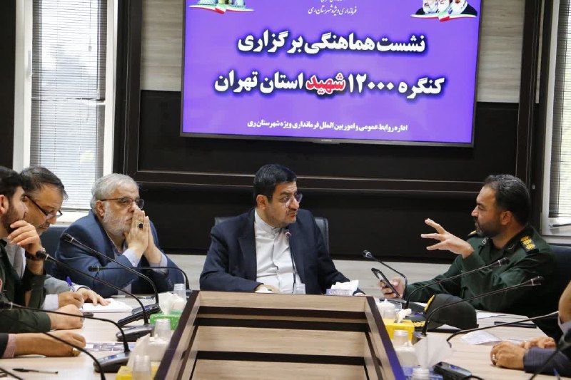 نشست هماهنگی برگزاری کنگره ۱۲۰۰۰ شهید استان تهران به ریاست مهدی باب الحوائجی معاون استاندار تهران و فرماندار ویژه شهرستان ری و باحضور مسئولین و اعضا در محل سالن جلسات شهدای مدافع حرم ساختمان فرمانداری برگزار شد.