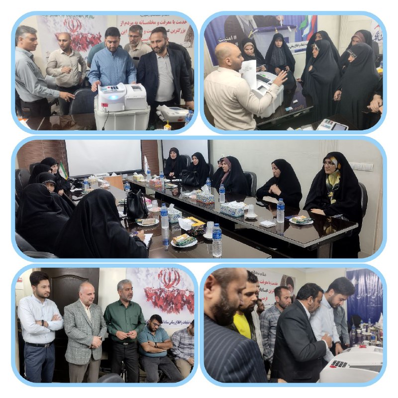 جلسه توجیهی آموزشی ناظران هیأت نظارت بر انتخابات دوازدهمین دوره مجلس شورای اسلامی با دستگاه های احراز هویت تمام الکترونیکی توسط مسئول کمیته فناوری اطلاعات ستاد انتخابات بخش خاوران در محل سالن جلسات بخشداری برگزار شد.