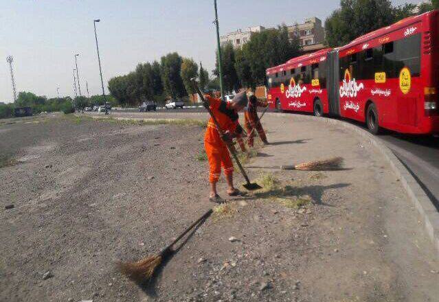 اجرای علف‌زنی و هرس فضای سبز در منطقه ۱۵