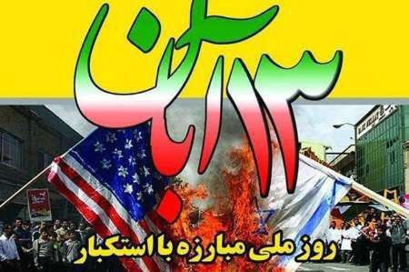 یومالله ۱۳ آبان سالروز تسخیر لانه جاسوسی آمریکا، روز دانشآموز و روز ملی مبارزه با استکبار جهانی به عنوان سند پرافتخار تاریخ کشورمان، روز مظلومیت دانش آموزان و سرافرازی دانشجویانی است که نقش ماندگار خود را در پیشبرد آرمان ها و اهداف والای انقلاب اسلامی فریاد زدند..