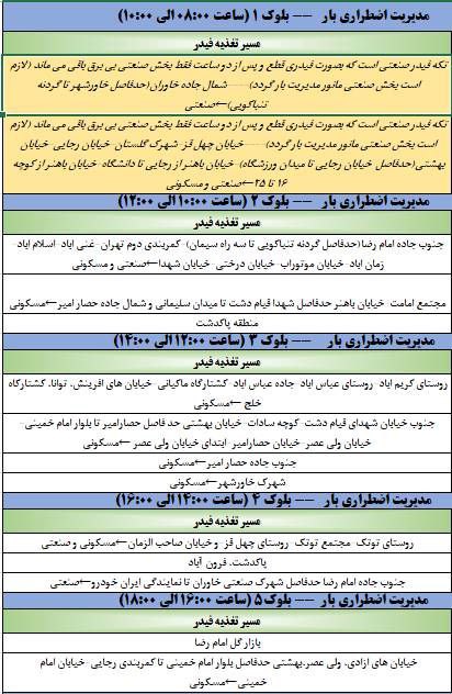 جدول خاموشی احتمالی امروز ۲۹ آذرماه