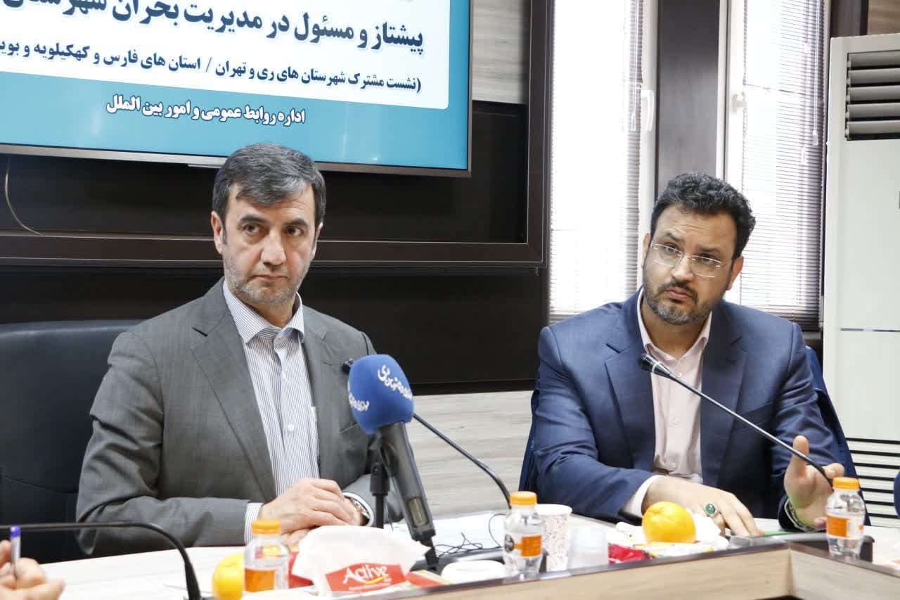 لازم بذکر است بر اساس دستورالعمل های ابلاغی در امر پشتیبانی در وقوع بحران استان های مهر خاوران و کهکیلویه و بویراحمد بعنوان استان های معین شهرستان ری و منطقه ۲۰ تهران تعیین شده اند.