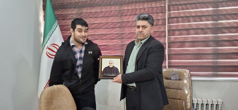 در ضمن برگزاری این جلسه علیرضا فیضی قاب عکسی از سردار سلیمانی را از طرف آقای ترابی رئیس اداره ورزش وجوانان شهرری به داود خادم مدیر بهزیستی شهرستان ری تقدیم نمودند.